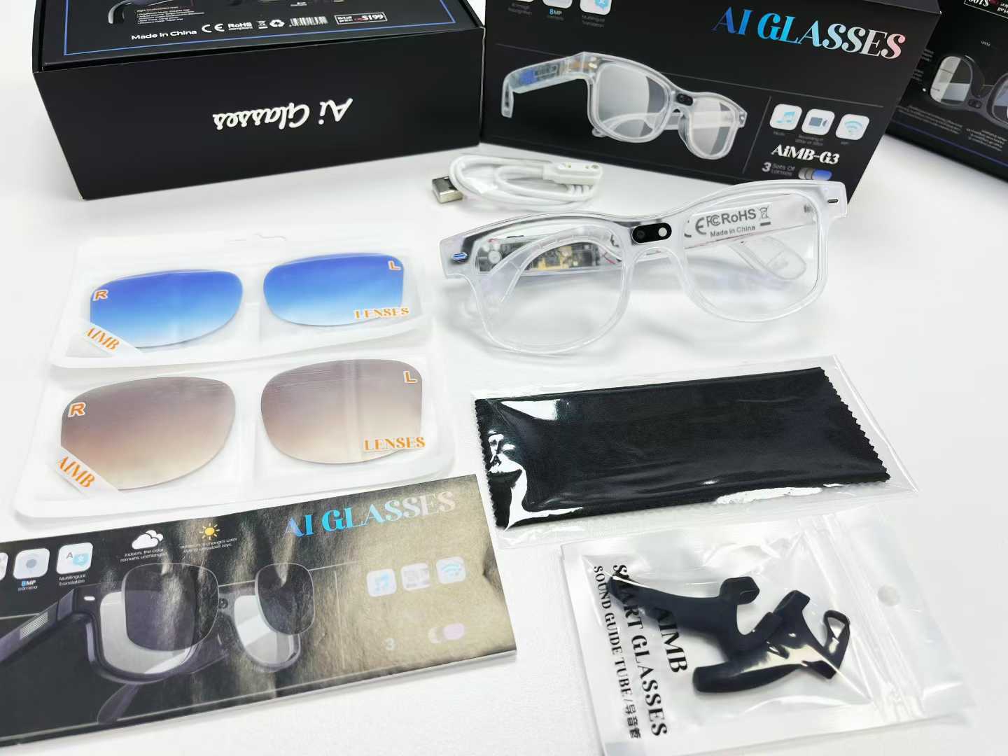 Lens Options: Includes three standard lenses (black, transparent, white frames)
