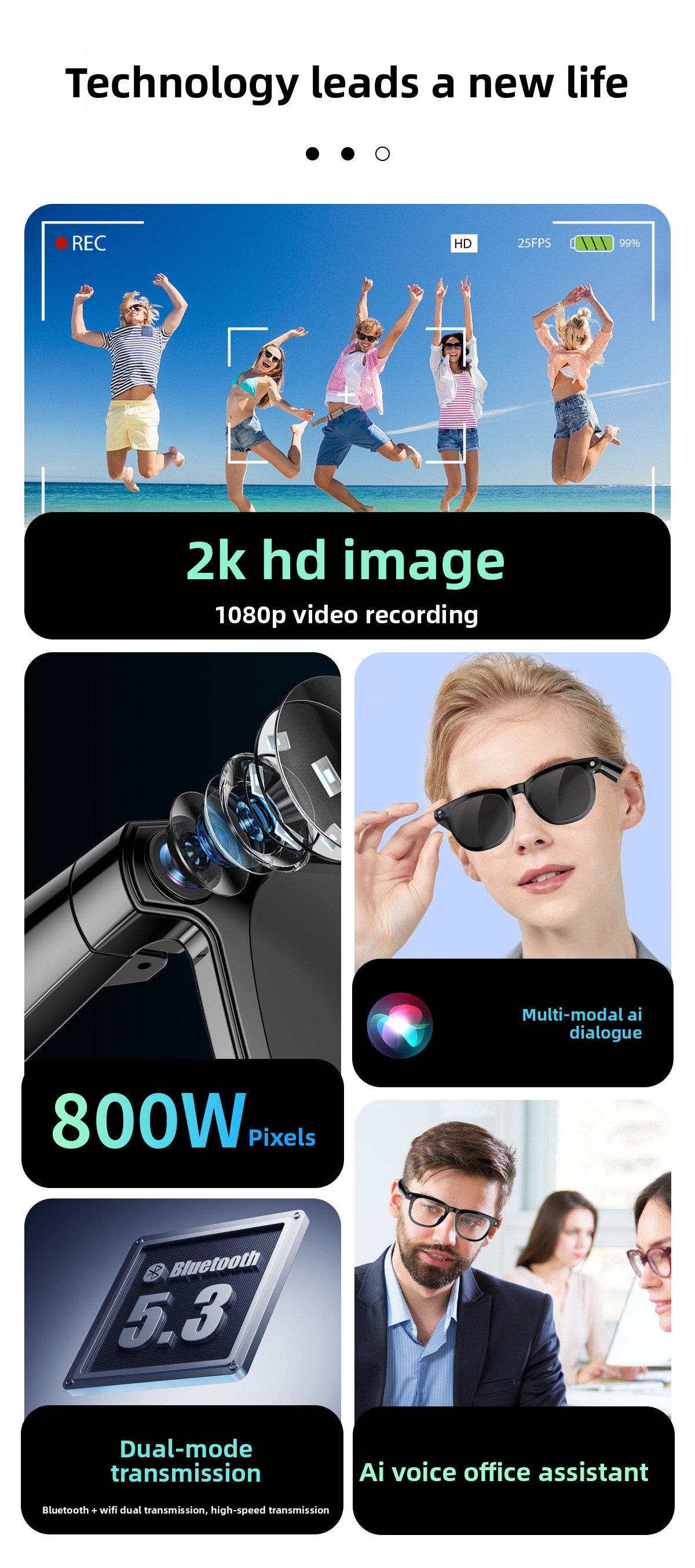 Smart Glasses with HD Video and Bluetooth