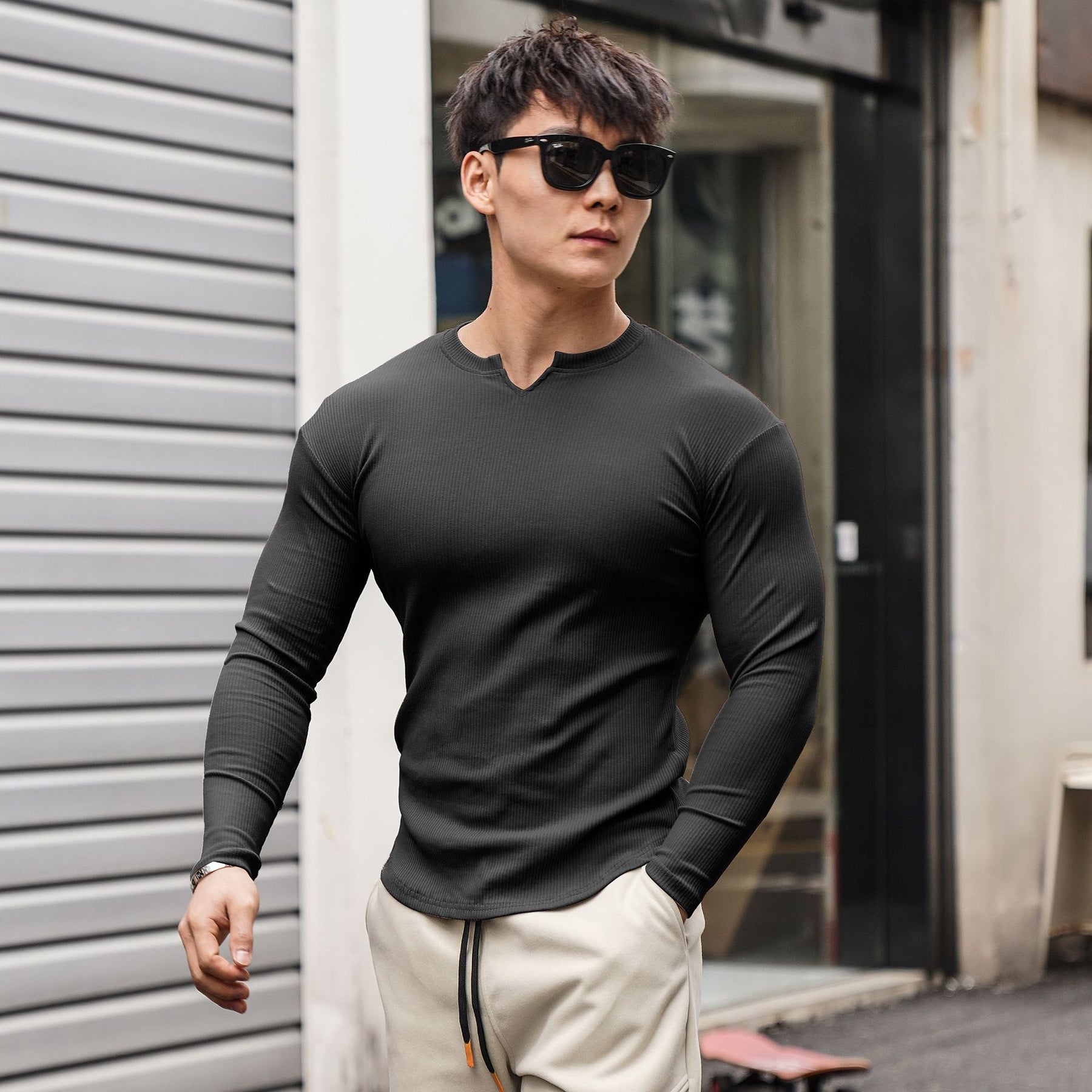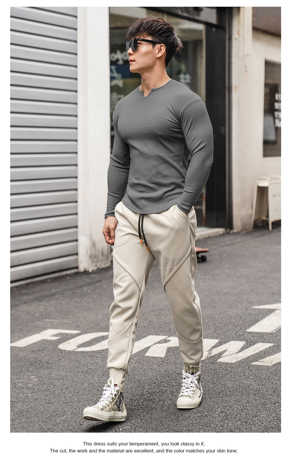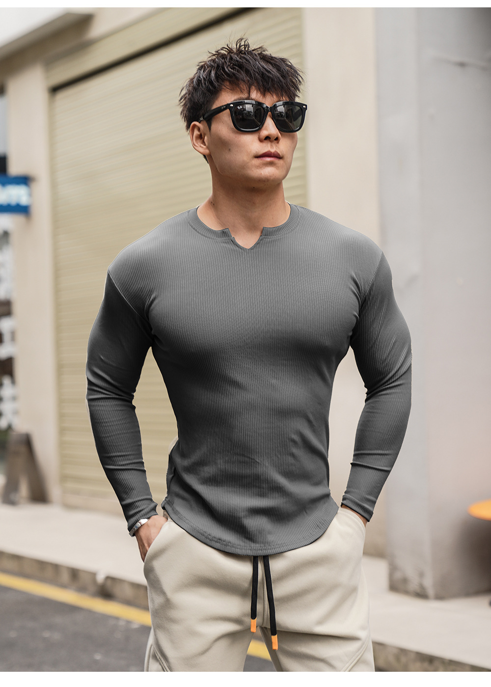 V-Neck Style: Classic V-neck collar for a modern fit.