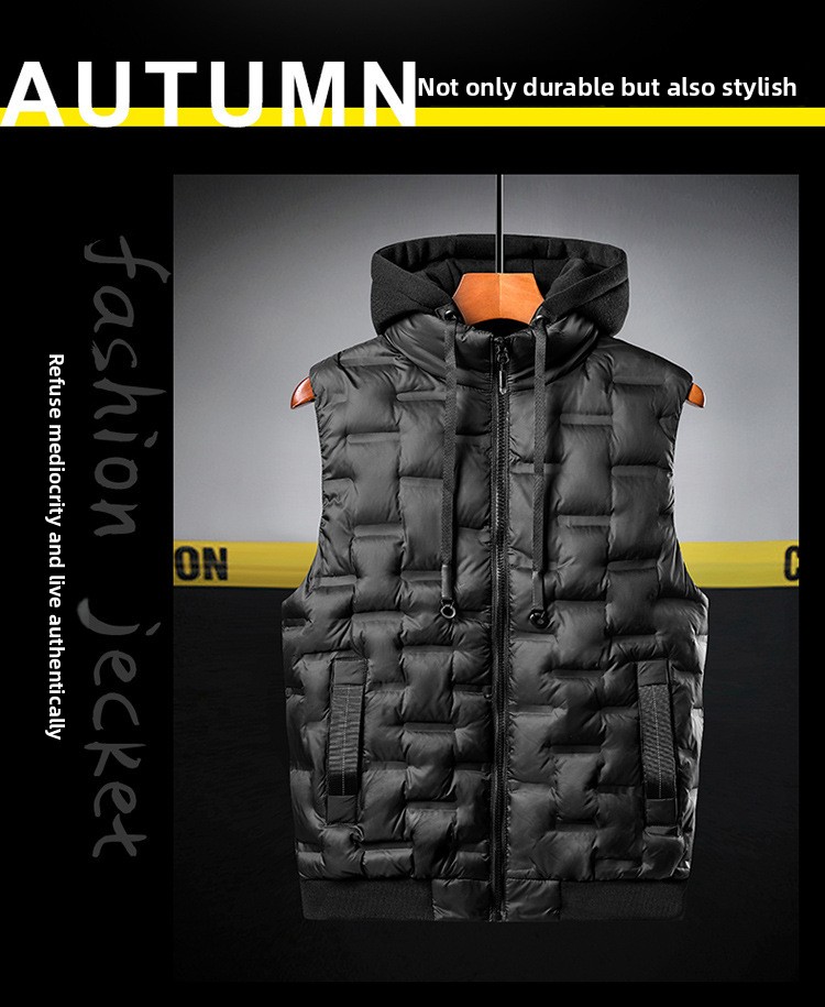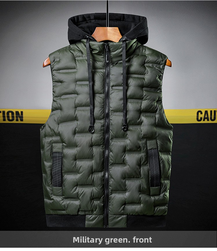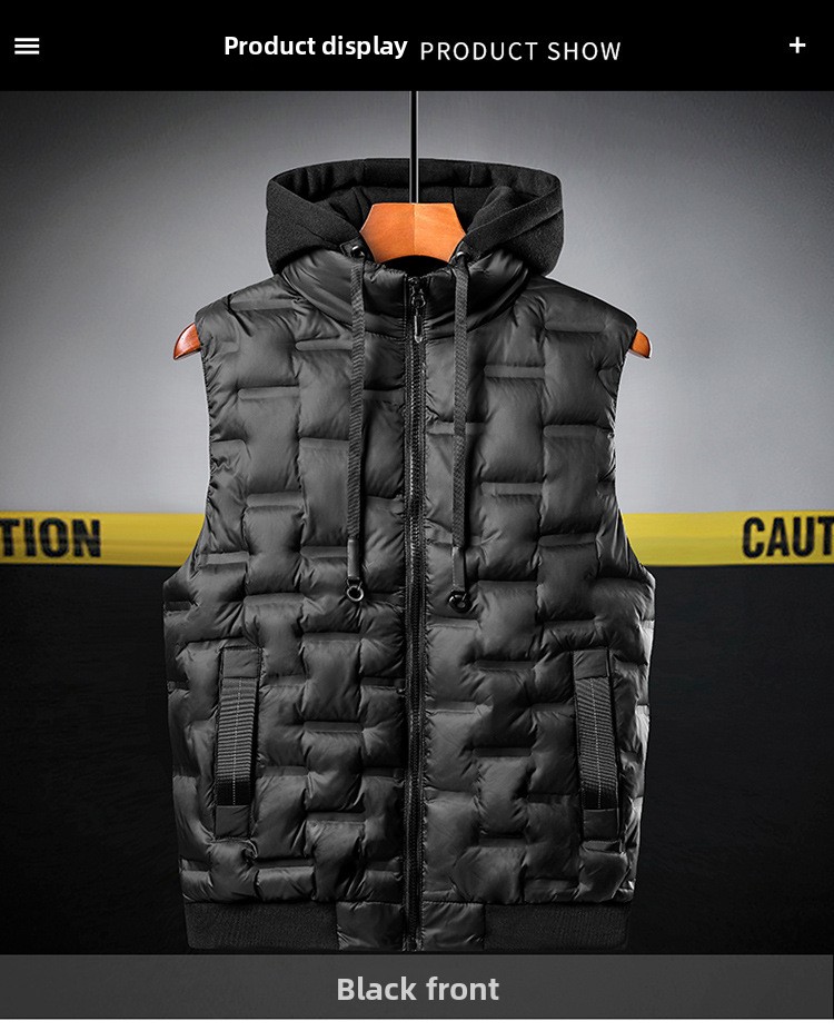 Mens Thickened Sleeveless Hooded Vest