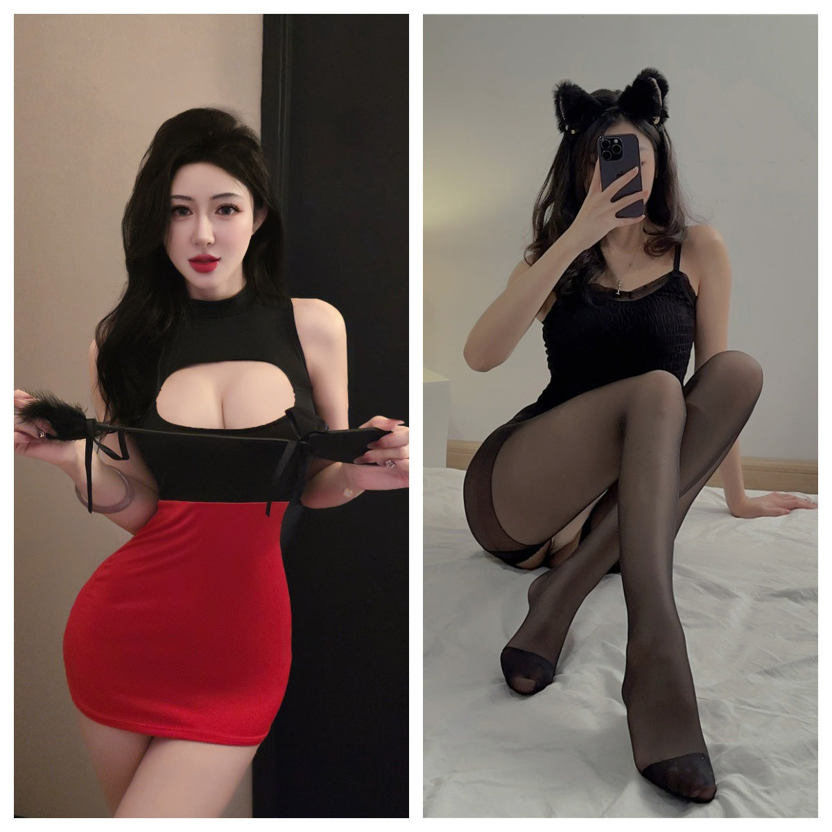Versatile Styles: Includes options with black stockings, fishnet stockings, or open-crotch stockings for varied appeal.