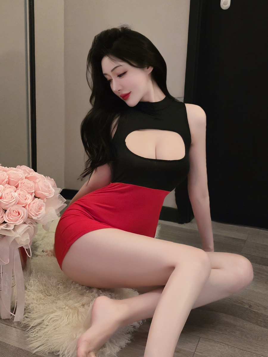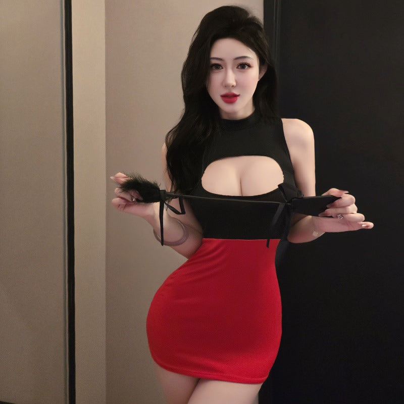 Sexy Design: One-piece secretary uniform with tempting breast-revealing details for an alluring look.